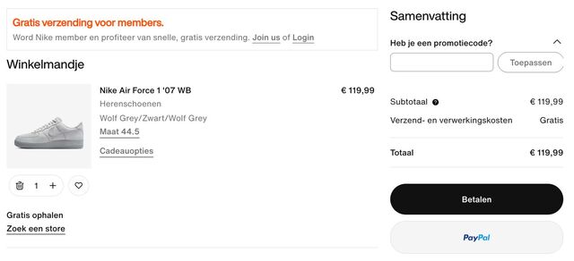 - Ga naar Nike.com en voeg je favoriete producten toe aan je winkelmandje.