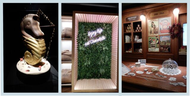 Naast geluidsfragmenten waren er video´s, foto hokjes, projectoren wat verhaaltjes afspeelde, et cetera. Het eerste stuk van het museum was net alsof je in een attractiepark was, dit was best grappig! Op het einde kregen wij een lepeltje waarmee we chocolade konden proeven. Dit ging van witte, karamel, Ruby, melk naar een steeds puurdere chocolade. Bij de chocolade shop heb ik ook nog wat chocolade gekocht, ach nu mag het!