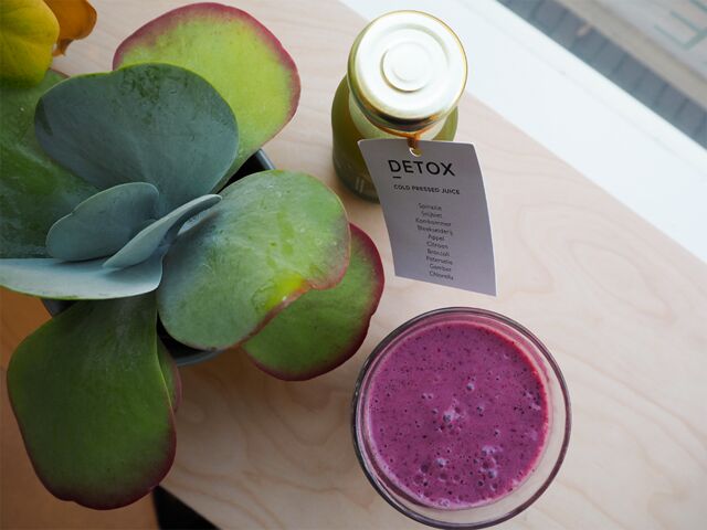 Op kantoor hadden wij het vaker over SLA. Mijn collega (Lisa) en ik waren al heel enthousiast over SLA en konden niet wachten om langs te gaan, Toen we binnenkwamen was er een gezellige sfeer en we werden heel goed ontvangen. Vanaf de buitenkant tot aan de binnenkant ziet er heel mooi uit. Je kunt lekker buiten zitten en binnen is er ook veel plek. Boven heb je zelfs een bank waar je kunt relaxen. Ik verwacht van een saladebar dat het er groen uit ziet met plantjes en dat was ook echt zo. We beginnen met een heerlijke smoothie en juice. In de smoothie zit rood fruit, banaan, citroen en amandelmelk. De juice was met groene groentes, appel, citroen en gember. Super healthy!