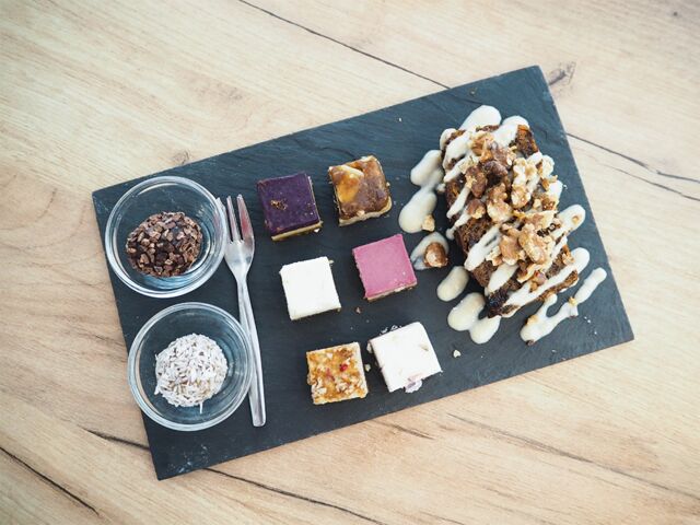 Je kunt SUE niet verlaten, zonder dat je een van de heerlijke zoetigheden hebt geproefd. We waren zo benieuwd naar alle gebakjes dat we hebben gekozen voor het proeverijtje. Je krijgt dan allemaal verschillende Sue bites, twee bliss balls en een carrot cake. Dit was mega lekker! Het zijn allemaal kleine bites, dus je kunt ze prima met elkaar delen. Sharing=caring! De carrot cake was wel echt een topper! En hoe Insta waardig ziet het eten eruit?! Eerst even foto's maken en dan genieten! Het assortiment is heel uitgebreid, er zijn heel veel verschillende soorten smaken van de bites zoals caramel shortbite, matcha latte, sticky toffee en nog veel meer! Dat klinkt toch geweldig?
