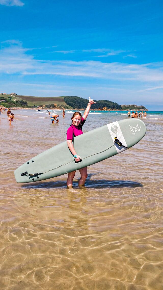 De diverse uitstapjes naar de omliggende steden, voor mijn trip waren dat San Vicente, Comillas, Santander en Gerra, waren super divers. Elk stadje had zijn eigen charme. In Comilas bezochten we het El Capricho de Gaudi, een bouwwerk van Gaudi, en in Gerra genoten we van de lokale foodtrucks met heerlijk eten en lekkere cocktails. Santander was een hele kunstzinnige stad met mooie muurschilderingen en schattige straatjes waar je echt het Spaanse gevoel van krijgt.”